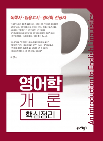 이에 본서는 영어학 개론에서 반드시 다루어야 할 핵심 내용을 정리하면서, 문제가 되는 전문용어들을 그 쓰임새와 관련하여 쉽고 정확하게 이해할 수 있도록 하는 데 역점을 두었습니다. 그리고 각 장이 끝날 때마다 객관식 연습문제와 주관식 문제를 풀어보게 함으로써 공부한 내용을 다시 한 번 복습하고 정확하게 정리해 볼 수 있도록 했습니다.