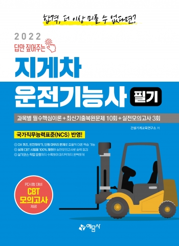 한국산업인력공단에서 발표한 새 출제기준 및 최신 법령 등을 완벽 반영한 ‘2022 답만 짚어주는 지게차운전기능사 필기’ 도서가 출간되었습니다. 기존에 출제되었던 기출문제를 철저히 분석하고 엄선하여 과목별 핵심이론과 함께 과년도 및 CBT 기출복원문제 10회분, 실전모의고사 3회분의 총 13회분을 수록하였습니다. 또한 실제 시험에 필요한 실기 코스 및 작업요령을 함께 구성하여 필기시험뿐만 아니라 실기시험까지 확실하게 책임지겠습니다.