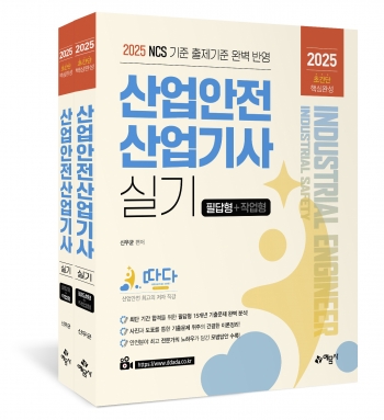 ‘2025 따다 산업안전산업기사 실기 초간단 핵심완성(필답형+작업형)’이 출간되었습니다. 산업안전 분야 학습에 반드시 알아야 할 이론을 전면 개편된 출제기준을 바탕으로 정리하여 이해하기 쉽게 하였습니다. 헷갈릴 수 있거나 어려운 이론 아래에는 그림 혹은 삽화를 넣어 수험생들의 이해도를 높일 수 있는 구성을 하였습니다. 특히 작업형은 시험의 영상과 관련된 사진 및 그림 혹은 [동영상 설명]을 넣어 실제 시험에서 다양한 영상이 나오더라도 적응할 수 있도록 하였습니다.