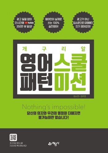 영어 발음, 문법, 회화를 모두 따로 공부해야 하고 막상 시작을 해도 눈에 띄는 효과를 느끼지 못해 답답해서 포기하기를 반복했다면 이제부터 어디서도 만나보지 못한 새로운 방식에 신개념 영어강의, 패턴미션과 함께 시작해보세요. 당신이 어렵게만 생각했던 영어가 놀라울 정도로 쉬워집니다.