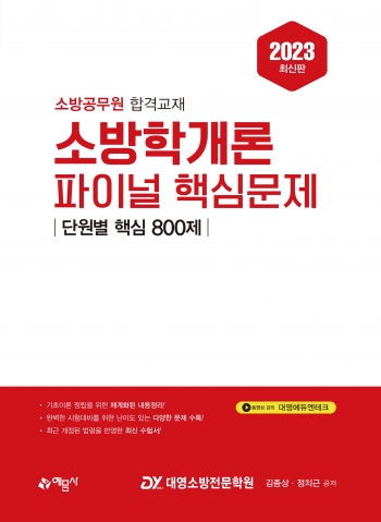 본 교재는 소방공무원 시험의 출제기준에 맞추어 시험 전 최종 실력을 체크하기 위해 시험에 자주 출제되는 핵심문제만으로 구성하였습니다. 본서를 활용·숙독하면 소방학의 역사,조직론, 재난관리론 등에 대한 정확한 이해와 암기, 더 나아가 고득점 획득 및 합격에 큰 도움이 될 것입니다.