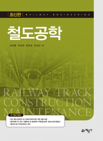 이를 위해 다양한 이미지를 함께 수록하였고, 단원별 기출문제 및 예상문제를 통해 숙지한 내용들을 정리할 수 있도록 하였습니다. 또한, 단원별로 새롭게 개정된 철도설계지침(KR CODE)과 철도보선관계법규(선로유지관리지침)를 준수하였고, 국토교통부에서 발행한 철도분야 전문용어 표준어에 관한 내용을 수록하여 독자들이 쉽고 빠르게 이해하고 내용을 숙지할 수 있도록 하였습니다.