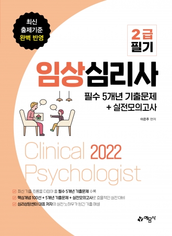 정신건강임상심리사로서 심리상담센터 운영·활동, 각종 저술 및 강의 활동을 해 온 저자의 ‘2022 임상심리사 2급 필기 필수 5개년 기출문제+실전모의고사’가 출간되었습니다. 필수핵심개념 100개를 선정하여 수록, 최신기출문제 5개년과 실전모의고사 2회분도 함께 수록하여 최종마무리까지 이뤄질 수 있도록 하였습니다. 또한 단순히 많은 기출을 푸는 것이 아닌 단 1문제라도 확실히 분석하고 암기하는 학습에 중점을 두어 전문가의 풍부한 해설을 함께 구성하였습니다.