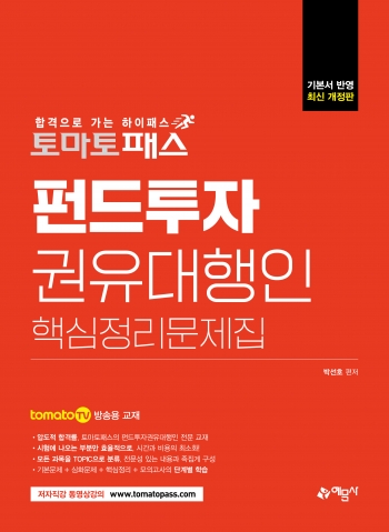 한국금융투자협회 주관 펀드투자권유대행인 전문 교재이다. 최신 기본서의 개정사항을 반영하여 시험에 나오는 부분만 골라 효율적으로 구성하였다. 모든 과목을 TOPIC으로 분류하여 효율적인 학습이 가능하도록 하였고, 문제풀이식 구성으로 수험생이 문제를 풀어보며 자연스럽게 이론을 학습할 수 있도록 하였다. 또한 ‘보충학습’과 ‘필수핵심정리’를 통해 헷갈리는 부분이나 다소 복잡한 개념을 한눈에 정리해주고 있으며, 시험 전 실력을 점검할 ‘최종모의고사’ 2회분을 수록하여 실제 시험에 완벽히 대비할 수 있다.