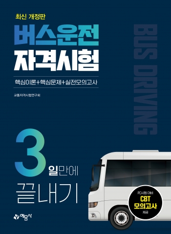 ‘버스운전자격시험 3일만에 끝내기’ 도서가 출간되었습니다. 문제은행식으로 출제되는 버스운전자격시험 대비 핵심이론과 핵심문제만을 담아 효율적으로 공부할 수 있도록 구성하였습니다. 최근의 출제 경향을 꼼꼼하게 분석한 과목별 핵심이론과 핵심문제 그리고 실전모의고사를 담은 ‘버스운전자격시험 3일만에 끝내기’로 단기 합격을 보장합니다.